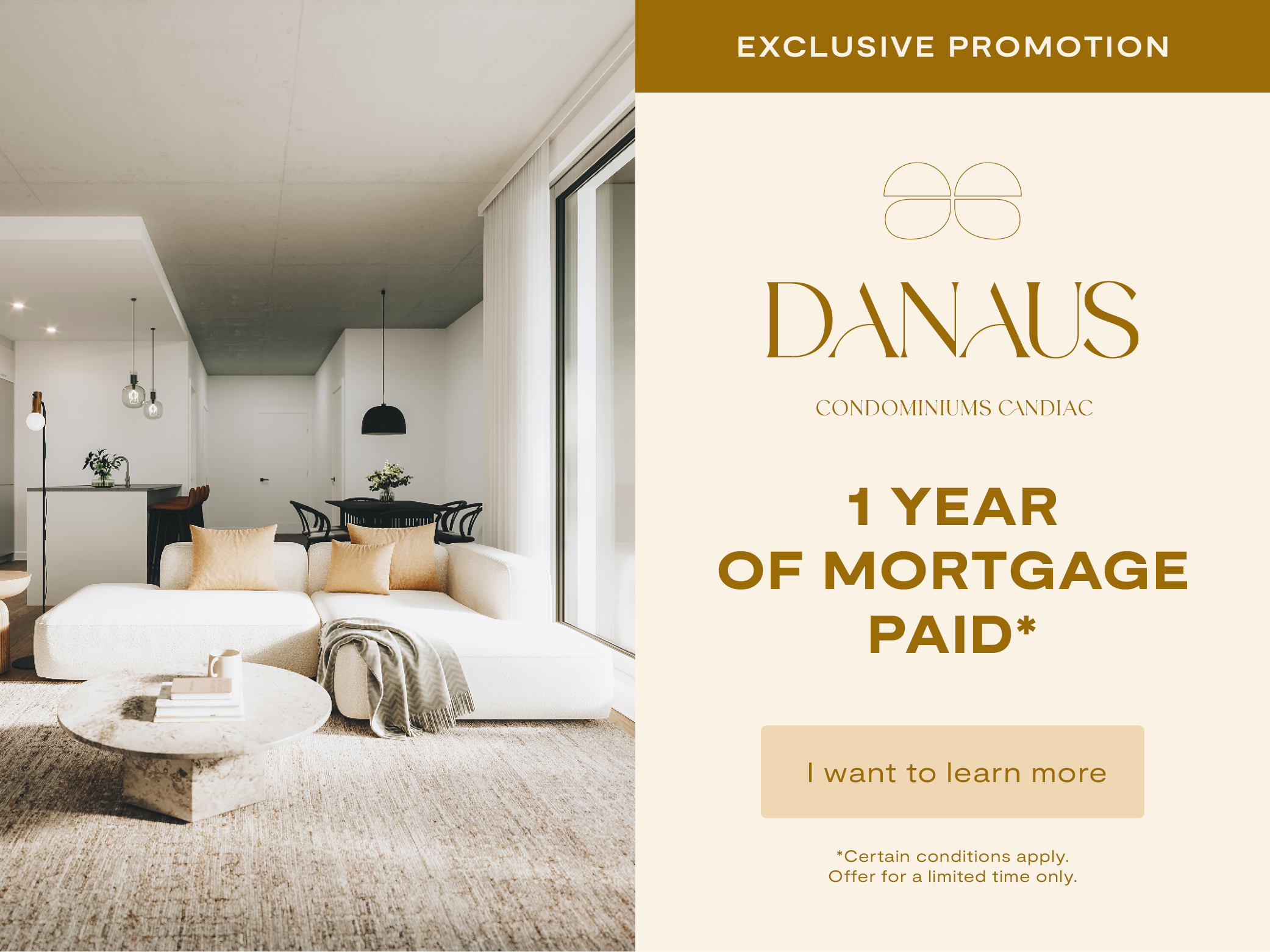 Exclusive Promotion 1 year of mortgage paid* Seize this unique opportunity with a deposit of only 5%.